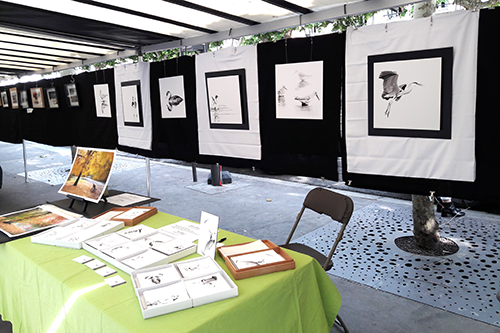 Pour ma part, j'avais réservé un grand emplacement partagé avec une amie, et j'ai présenté les tirages de l'exposition « Plumes Blanches », tandis que Véronique présentait des photographies de chevaux de Camargue.